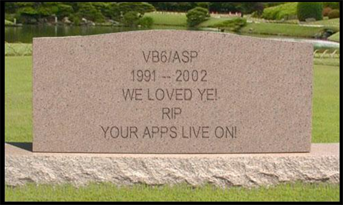 Section titled “Trends and Predictions”Almost twenty years have passed since the last major release of Classic Visual Basic (a.k.a VB6) and Classic ASP. Microsoft’s recommended replacement for VB6/ASP, .NET, has evolved rapidly and is established as a leading platform for software development. The world is moving on, and VB6 and classic ASP are being left farther and farther behind.
