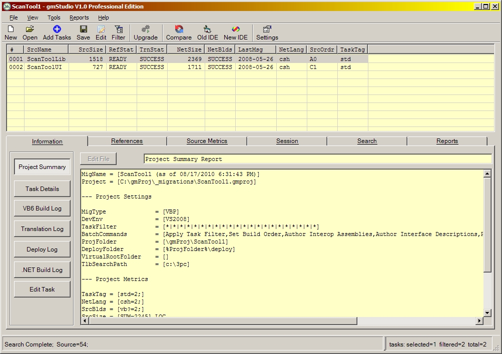If you have successfully installed gmStudio, you will get a log file similar to the one shown below. The log shows the default migration steps for a two-VBP sample migration project: