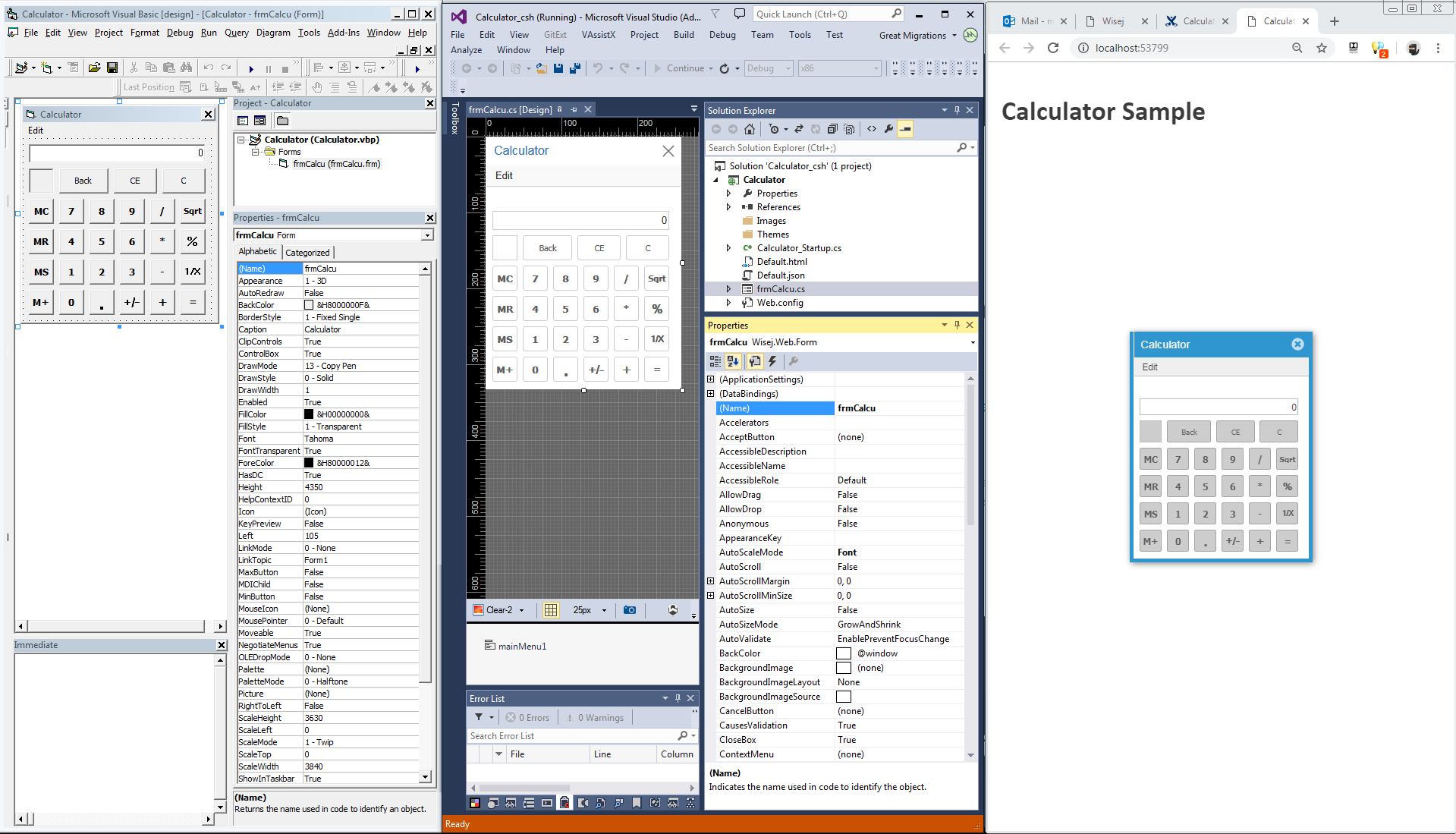 - Middle: Calculator Form in Wisej designer in Visual Studio