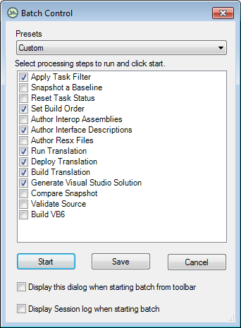 Default sequences of steps are setup for you and saved with the project file when you create a new migration project. If you change the selected set of steps and start the batch, that new sequence of steps is saved to the project file.