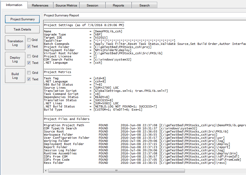 | Build VB6 | For VB6 migration units, this item attempts to build the VBP with the VB6 compiler then checks the results and updates the SrcBlds field accordingly |