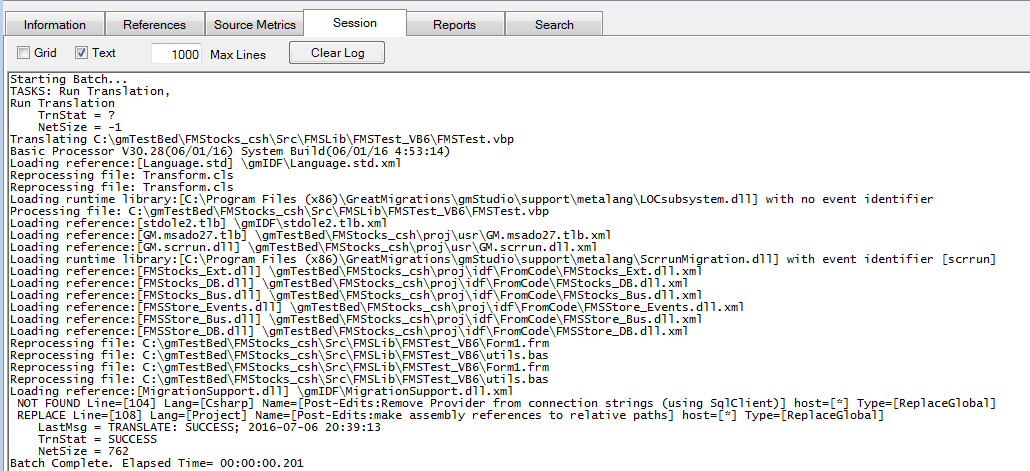 MigName: Interop2_csh (as of 09/09/2009 5:32:10 PM)Project: C:\gms\samples\workspace\_migrations\Interop2_csh.gmprojTaskTag: iop2=2;NetLang: csh=2;SrcBlds: SUCCESS=2;SrcSize: SUM=2245 LOCTScript: tran.scantool_iop.xml=2;RefStat: READY=2;TrnStat: SUCCESS=2;NetSize: SUM=3885 LOCNetBlds: SUCCESS=2;BldType: OleDll=1; Exe=1;
